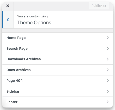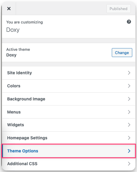 Doxy WordPress Theme comes with a comprehensive set of options that you can manage within the WordPress live customizer panel. Once you go to Appearance -\> Customize, you will be able to see the main tab which opens the Doxy theme settings (besides the default sections that come with WordPress by default).