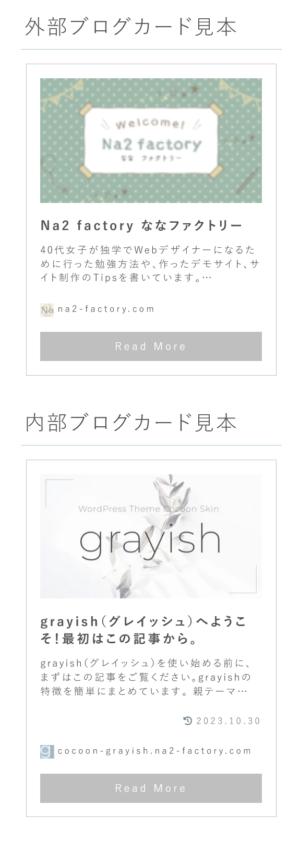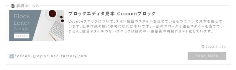 ブログカードがこちら。「Read More」ボタンが付加されています。