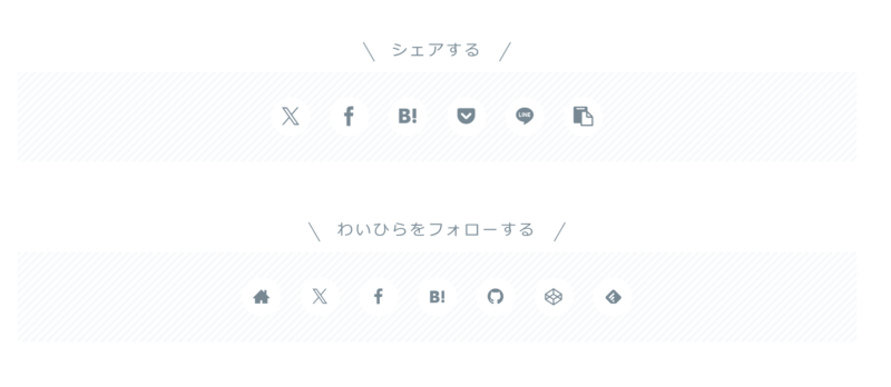 本文下のシェアボタンやフォローボタンはこんな感じです。