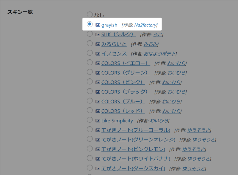 Na2 factoryを運営されているななふさんが作成されたgrayishスキンを同梱させていただきました。