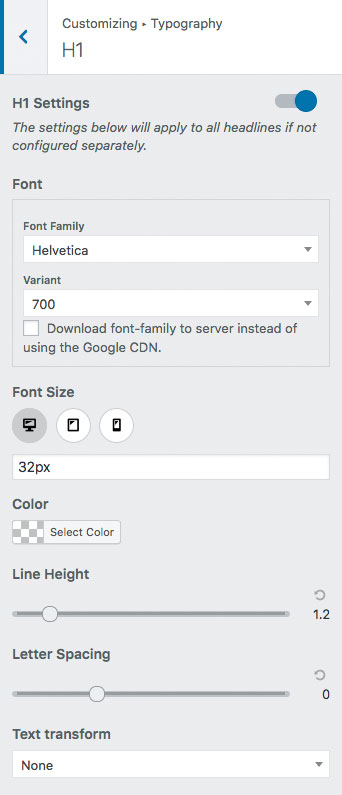 In addition to the typography settings, Premium Add-On users can take advantage of the following typography controls: