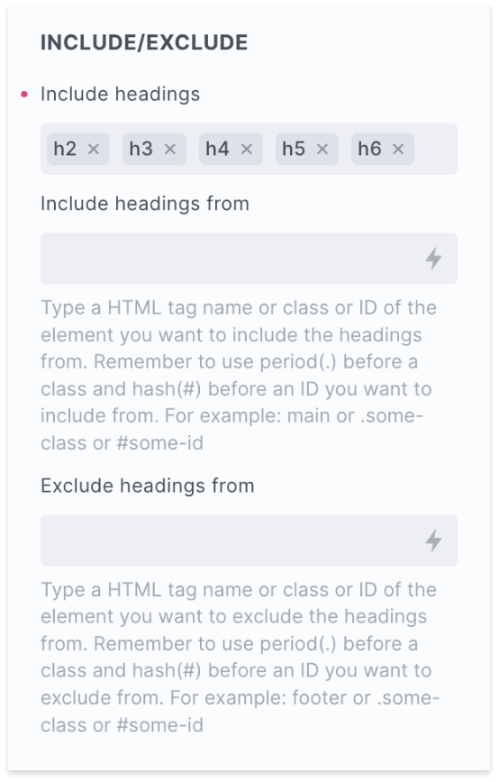 Flexibility To Include/Exclude Headings