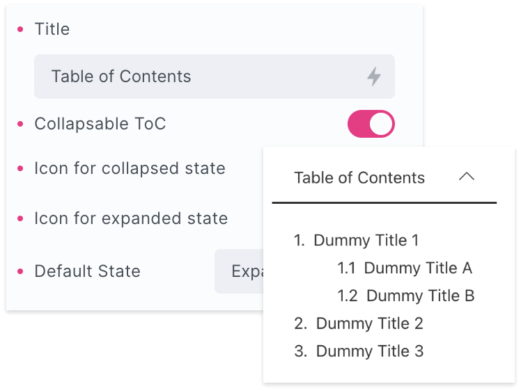 Make your TOC headings collapsible with just a simple click. Max Addons Table of Contents offers a “Collapsible ToC” feature that allows your website visitors to expand or collapse headings as per their preference. .