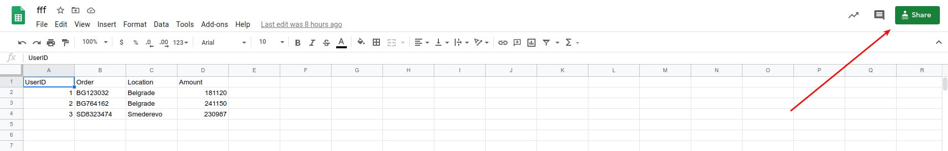 When you visit your already published sheet, click on the "Share" button in the top right corner of your sheet: