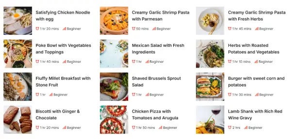 Help visitors find their perfect dish quickly! Enable filtering by category, difficulty level, prep time, and more.