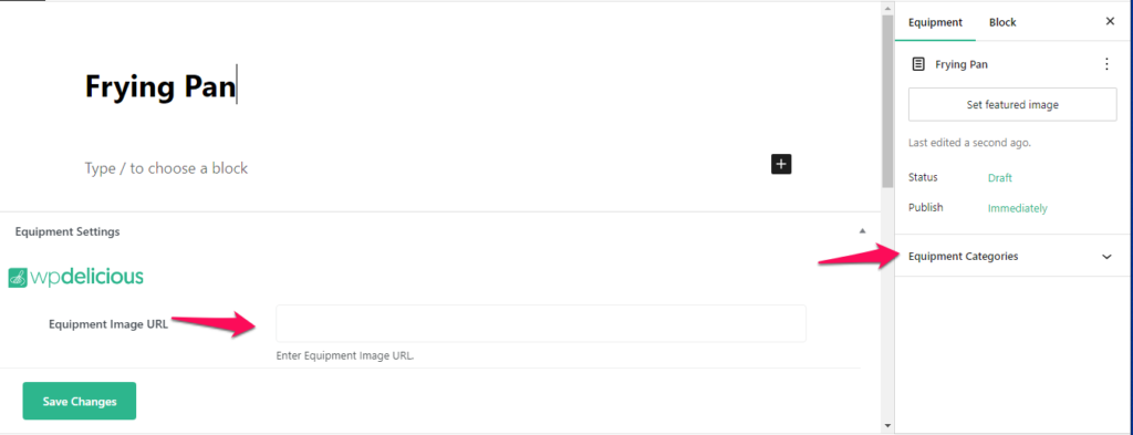 - Equipment Image URL: Enter the URL of the featured image. After saving changes, it will appear in the Featured Image placeholder.