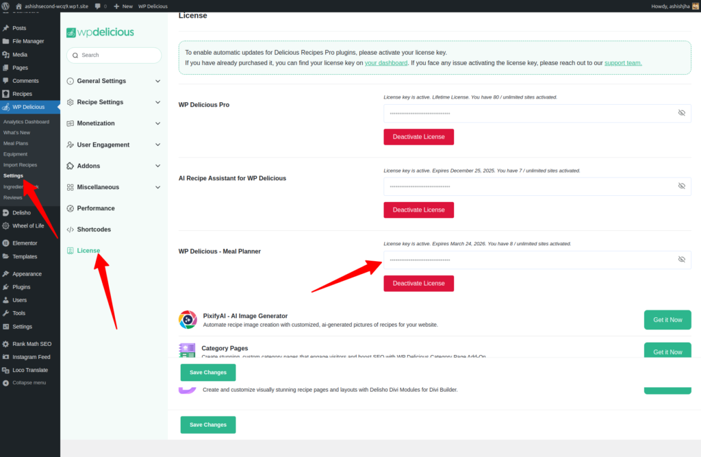 - Navigate to Dashboard > WP Delicious > Settings > License.