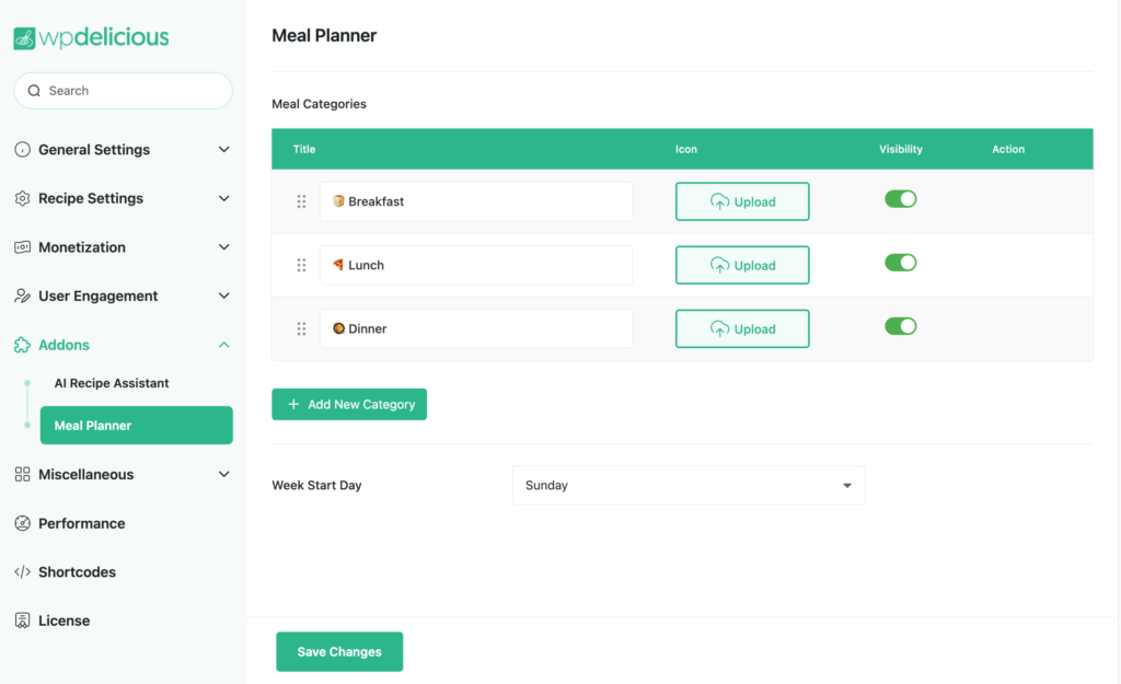 Dashboard > WP Delicious > Settings > Addons > Meal Planner