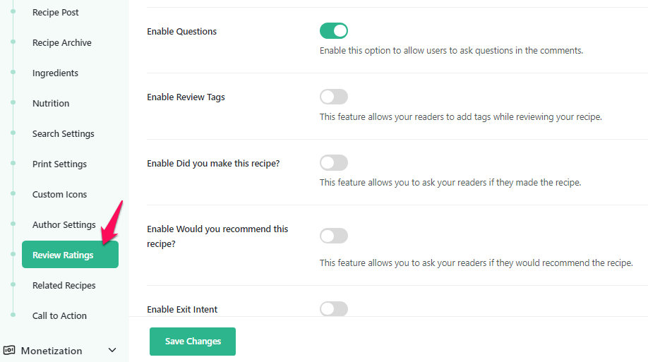 Enable Review Tags: This feature allows your readers to add tags while reviewing your recipe.