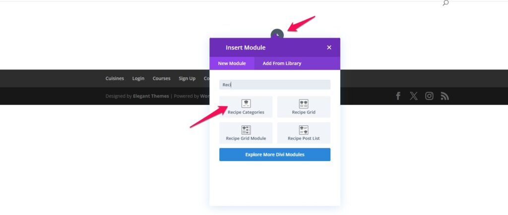 You can add the Recipe Categories widget via the Divi Page Builder.