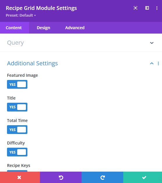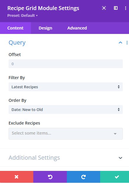 Below are the settings you can configure to set up the Recipe Grid Module: