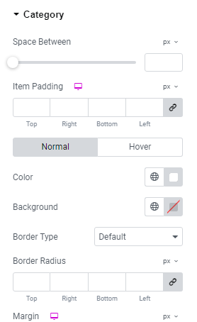- Margin: Set the margin around the category of the recipe.