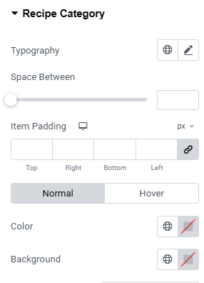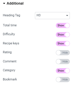 - Category: Enable or disable the toggle to display the category of the recipe post.