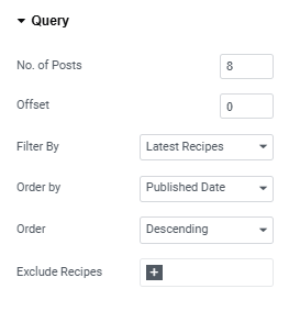 - Exclude Recipe: Select recipes that you want to exclude from being displayed in this widget section.