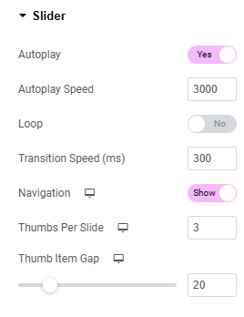 - Autoplay: Toggle this option to enable autoplay for the slider.