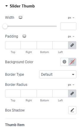 - Box Shadow: Add and configure a box shadow effect for the slider thumbs.