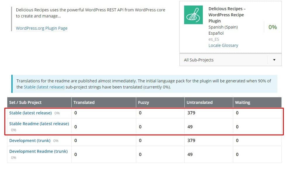 You need to translate only Stable version as shown in the screenshot above.