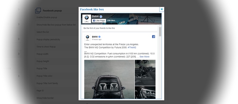 Nowadays social traffic is very important for every website, so it’s very important to have an animated and nice designed fan page on your website. As we already mentioned, you can use the Popup and Sticky boxes on specific pages/posts and categories. Also, you can set different settings, such as Popup display time, width and height, configure the Popup title settings, such as color, font and so on.