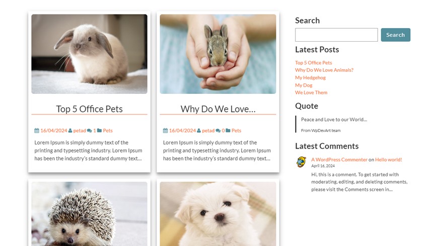 The blog design of the Pet Shop WordPress theme is unique and customizable. This means you can change the colors and other settings of your blog elements.