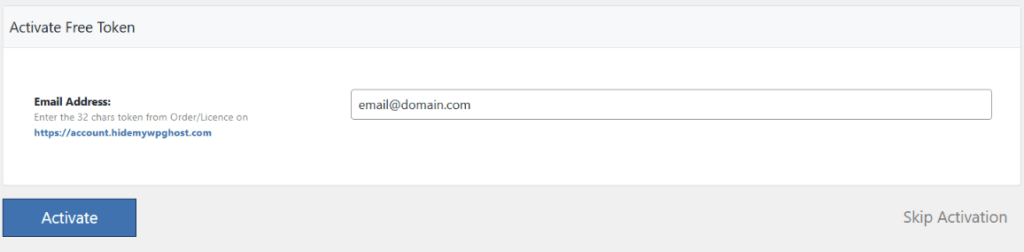 Note! If you don’t want to connect to the WP Ghost dashboard and manage your websites and security monitors, click Skip Activation. You can activate it later if you want.