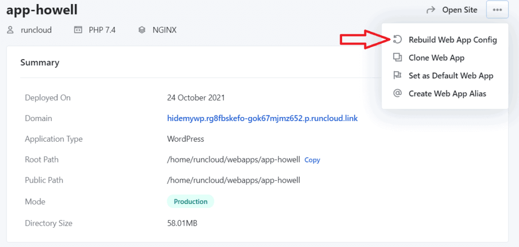 First, create the hidemywp.conf file on the website root directory through File Manager on RunCloud panel.