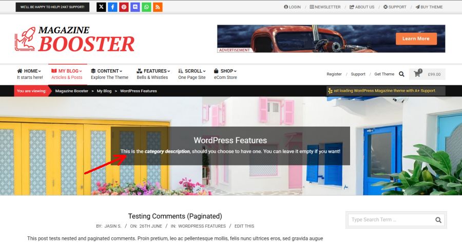 TopMagazine Booster displays archive descriptions (optional) in the header while viewing the archive index