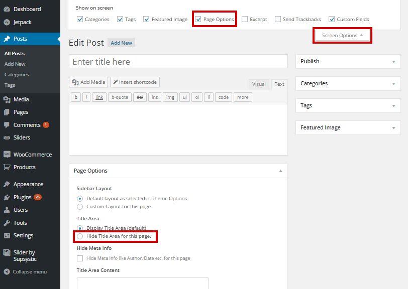 Sometimes you may not want to display the title area for some specific pages (for example, the checkout page of WooCommerce). In such cases you can disable the Title Area for specific pages from your wp-admin area.