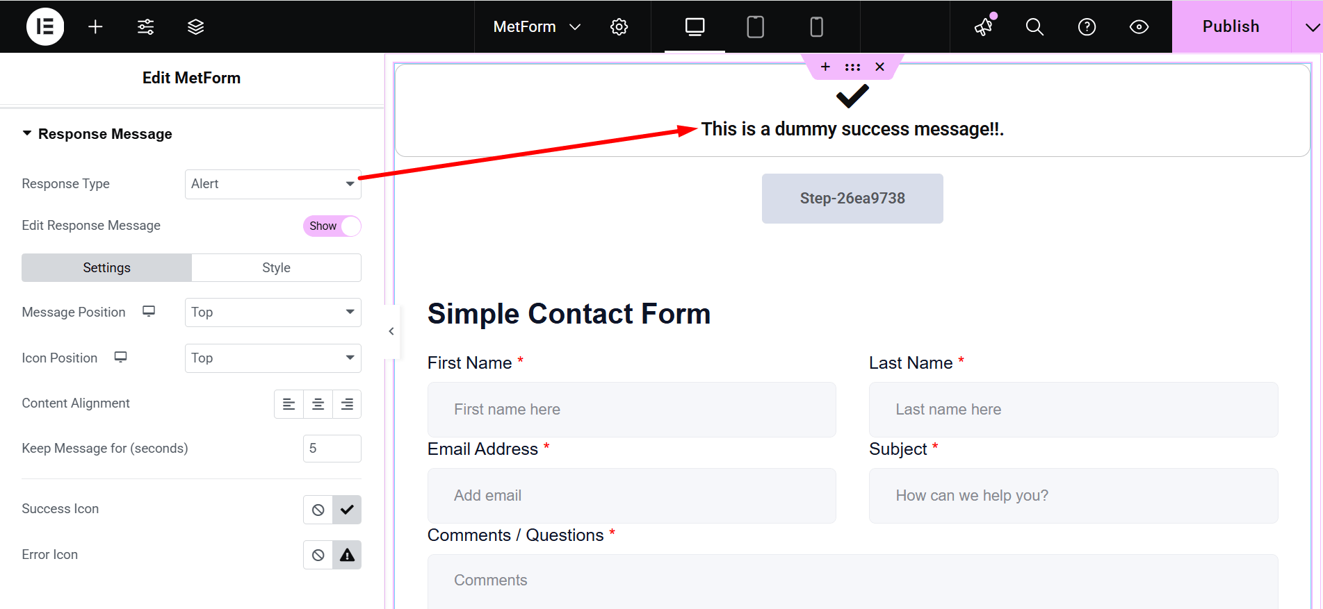 It confirms to the users whether their message has been successfully submitted or not. Either way, creating such a response message is quite easy for the MetForm pro users.