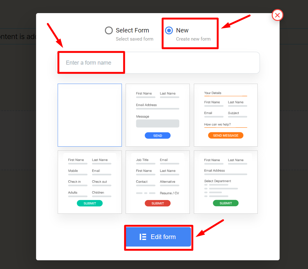 - Step=>4: Select New=> Enter your Form Name=> Click on Edit Form