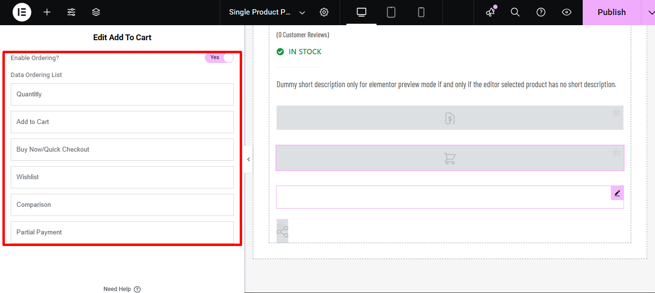 Note: Vous pouvez également activer le stock de produits avec un paramètre global qui active tous les widgets de ShopEngine en même temps.