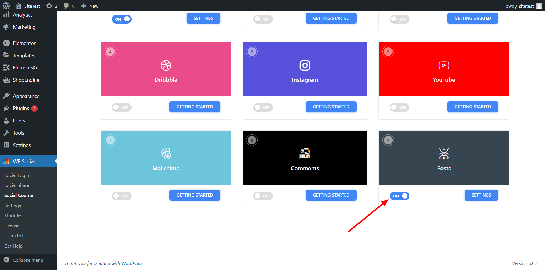 - Vai a WP Social > Contatore sociale dalla dashboard di WordPress.