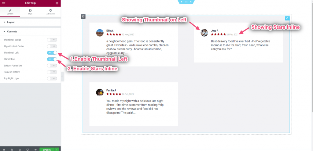 Quindi, diamo un'occhiata alla visualizzazione delle recensioni di Yelp WordPress per il tuo sito con ElementsKit-