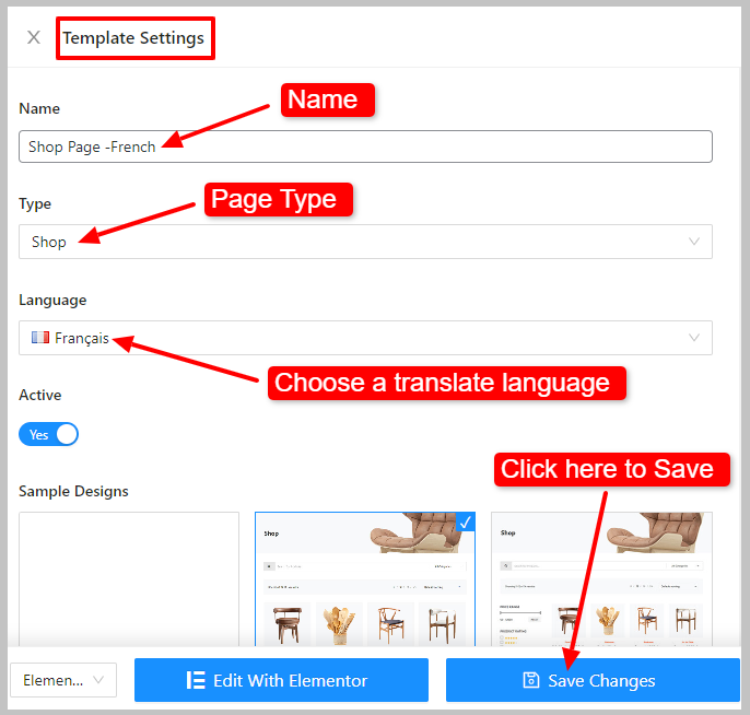 Allo stesso modo, crea un altro modello per un'altra lingua (Francese). Mantieni il tipo di pagina uguale al modello precedente.