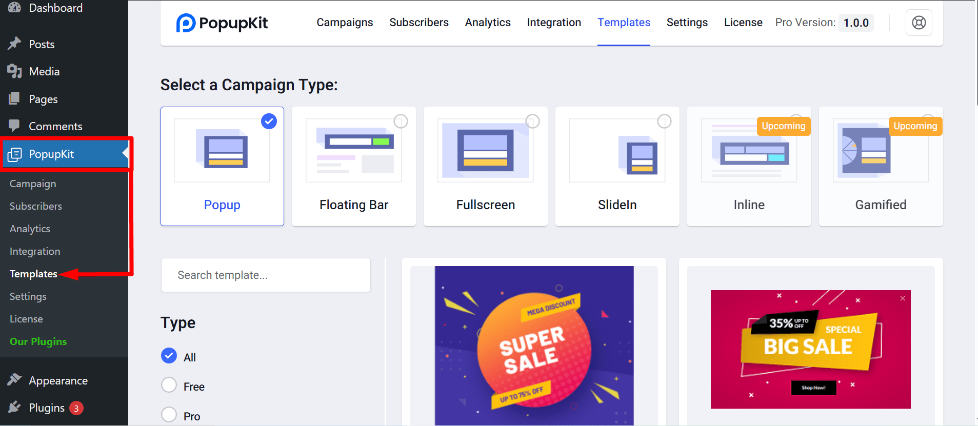 From your dashboard, navigate to the Templates and choose any template from the options.
