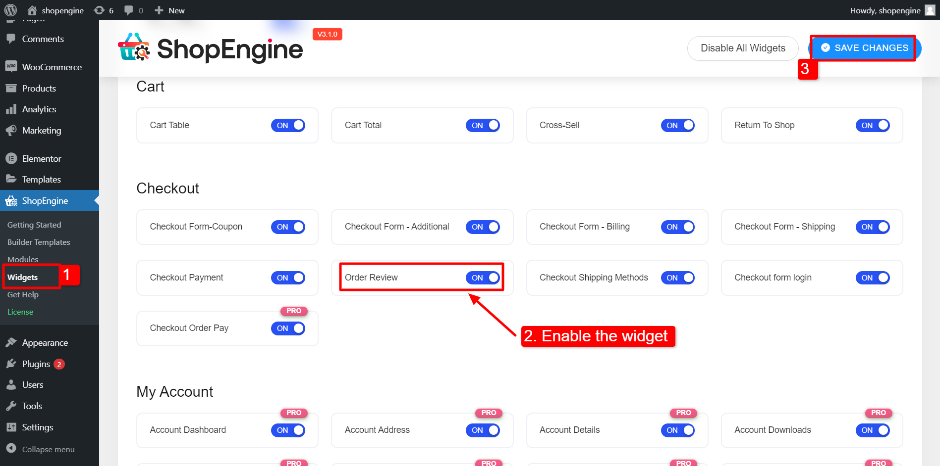 il widget Revisione ordine funziona con il modello ShopEngine Checkout. Pertanto è necessario creare un modello per la pagina di pagamento utilizzando il generatore di modelli ShopEngine.