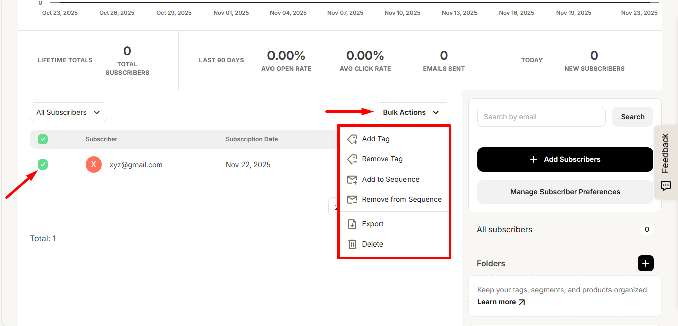 Expand the Grow option from the Kit’s menu and select Subscribers.
