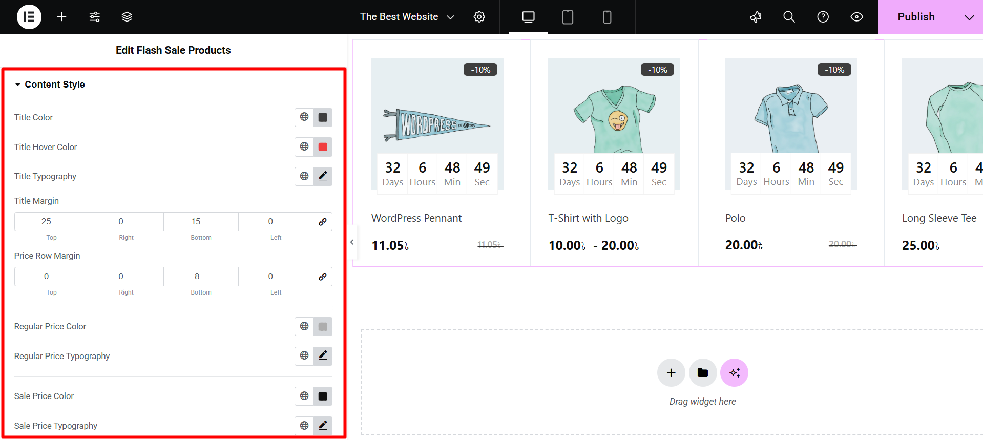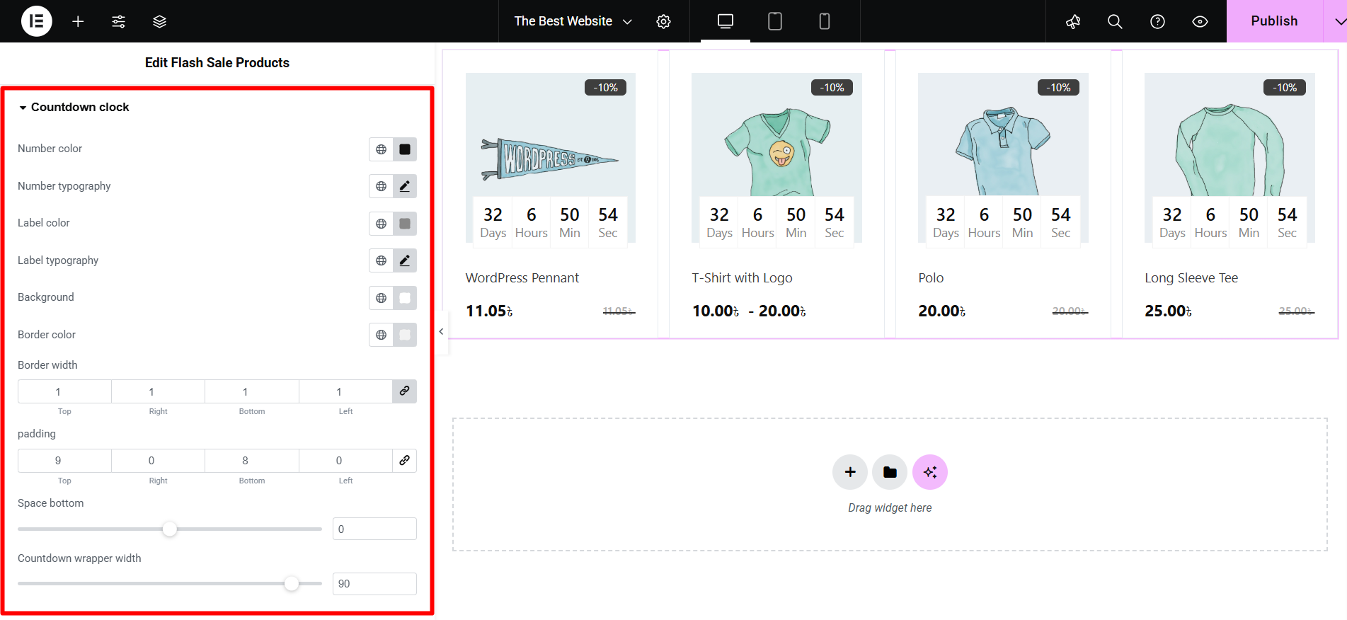 É fácil adicionar ofertas de produtos de venda relâmpago em sua loja WooCommerce usando apenas o widget 'Produtos de venda relâmpago'. Para adicionar produtos de venda relâmpago, siga as seguintes etapas simples –