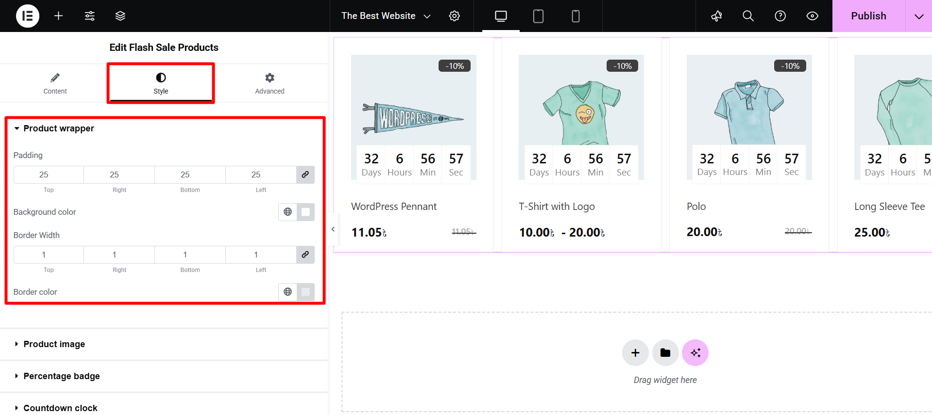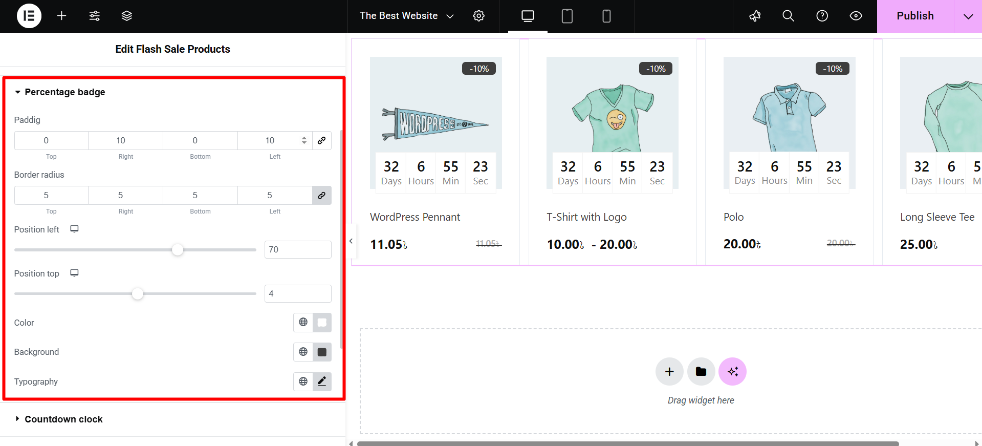 Etapa 3: adicionar widget de produtos de venda em Flash #