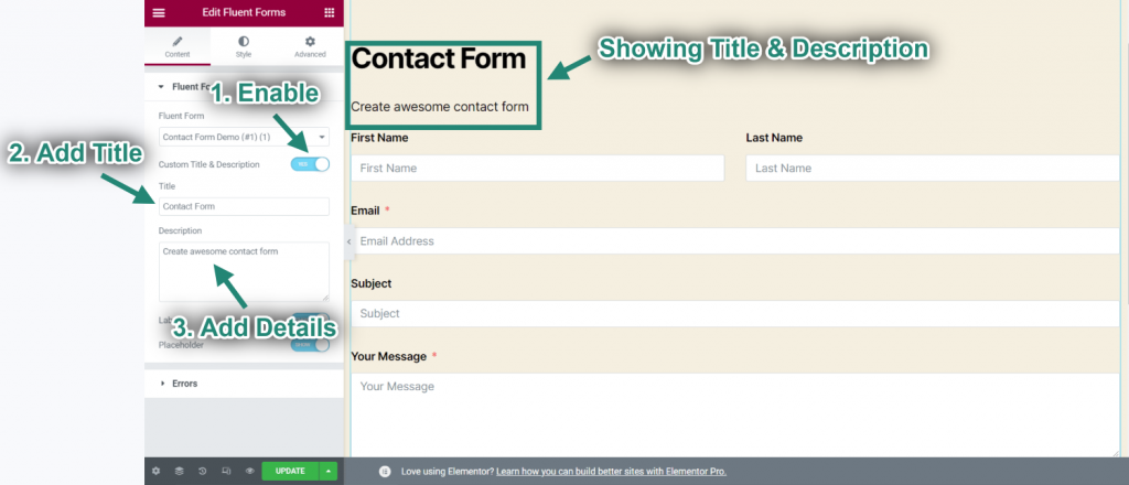WP Flytande former är den ultimata användarvänliga, anpassningsbara dra-och-släpp kontaktformulärbyggaren för WordPress. Med ElementsKit Fluent Form kan du designa Fluent Form från Elementors sidbyggare och anpassa det som du vill. Här är en omfattande artikel för att förklara varje metod i detalj. Följ steg-för-steg-processen för att ansluta Flytande former.