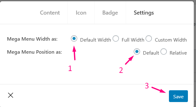 - Klicka på Mega-meny med inställningsikon på vilket menyalternativ du vill anpassa.