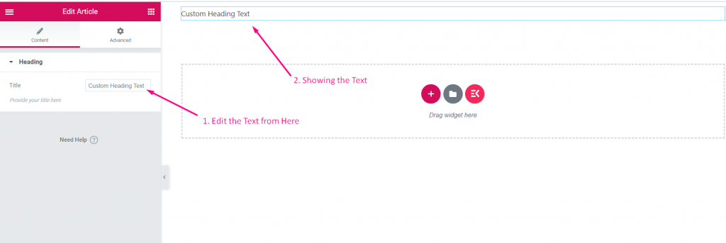 Steg=>7: Gå nu till Elementor–> Sök efter din skapade widget –> Dra widgeten–> Släpp