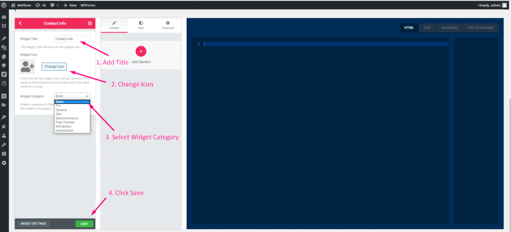 - Gå nu till Elementor–> Du kan se att widgeten skapas på den valda kategorisektionen