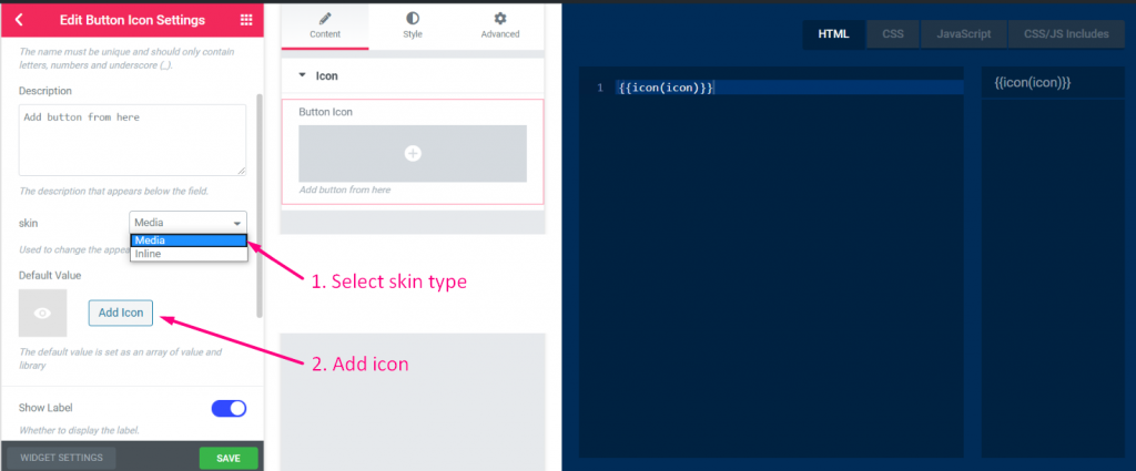 - Klicka nu på Lägg till avsnitt för att lägga till Ikon kontroll till widgeten