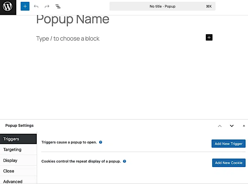 Now that you’re either creating or editing a popup, you can add a popup trigger. Here’s how to do that.