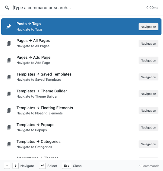 The Elementor integration in Commandify makes it incredibly easy to search, manage, and create Elementor templates using a single keyboard shortcut.