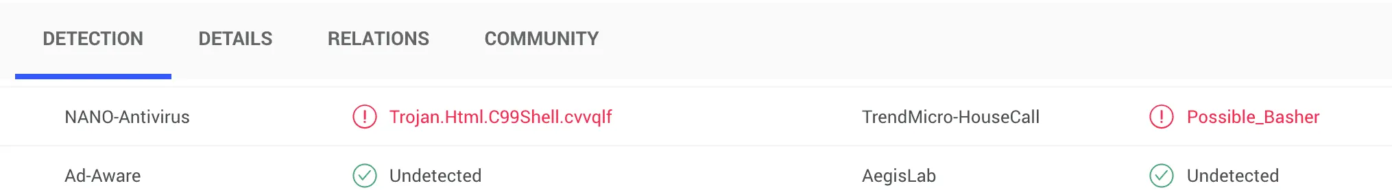 In upcoming versions of Security Ninja, we’ll be reformatting these snippets to prevent detection by other virus scanners, ensuring seamless compatibility.