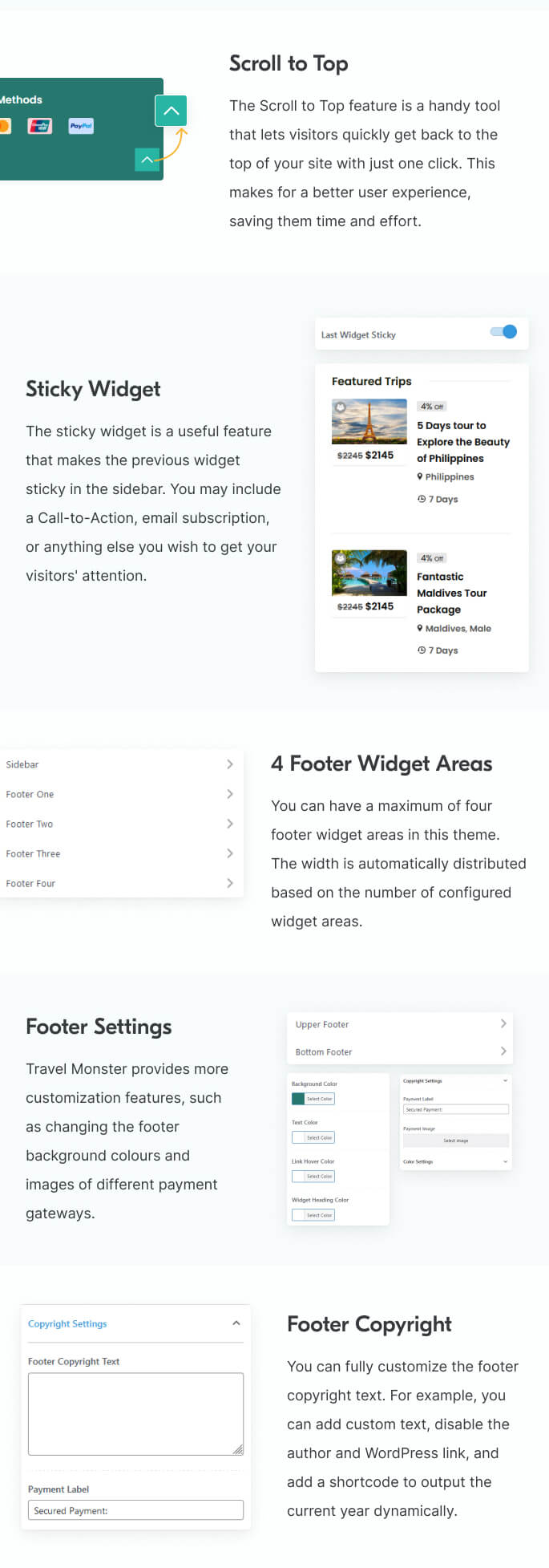 Travel Monster provides more customization features, such as changing the footer background colours and images of different payment gateways.