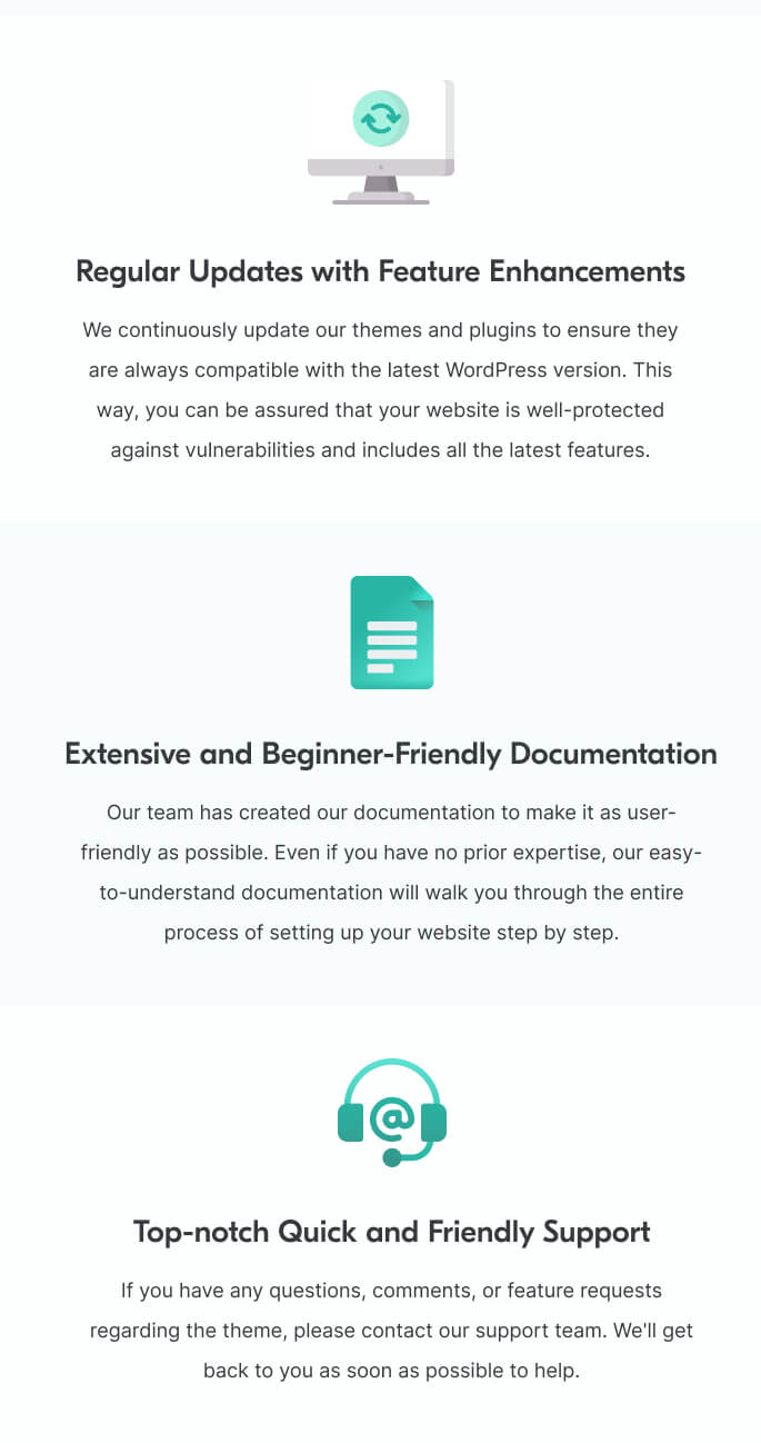 We continuously update our themes and plugins to ensure they are always compatible with the latest WordPress version. This way, you can be assured that your website is well-protected against vulnerabilities and includes all the latest features.