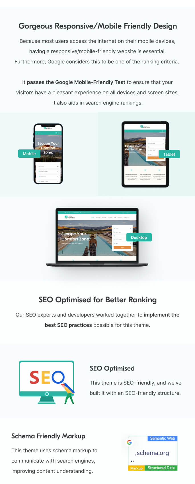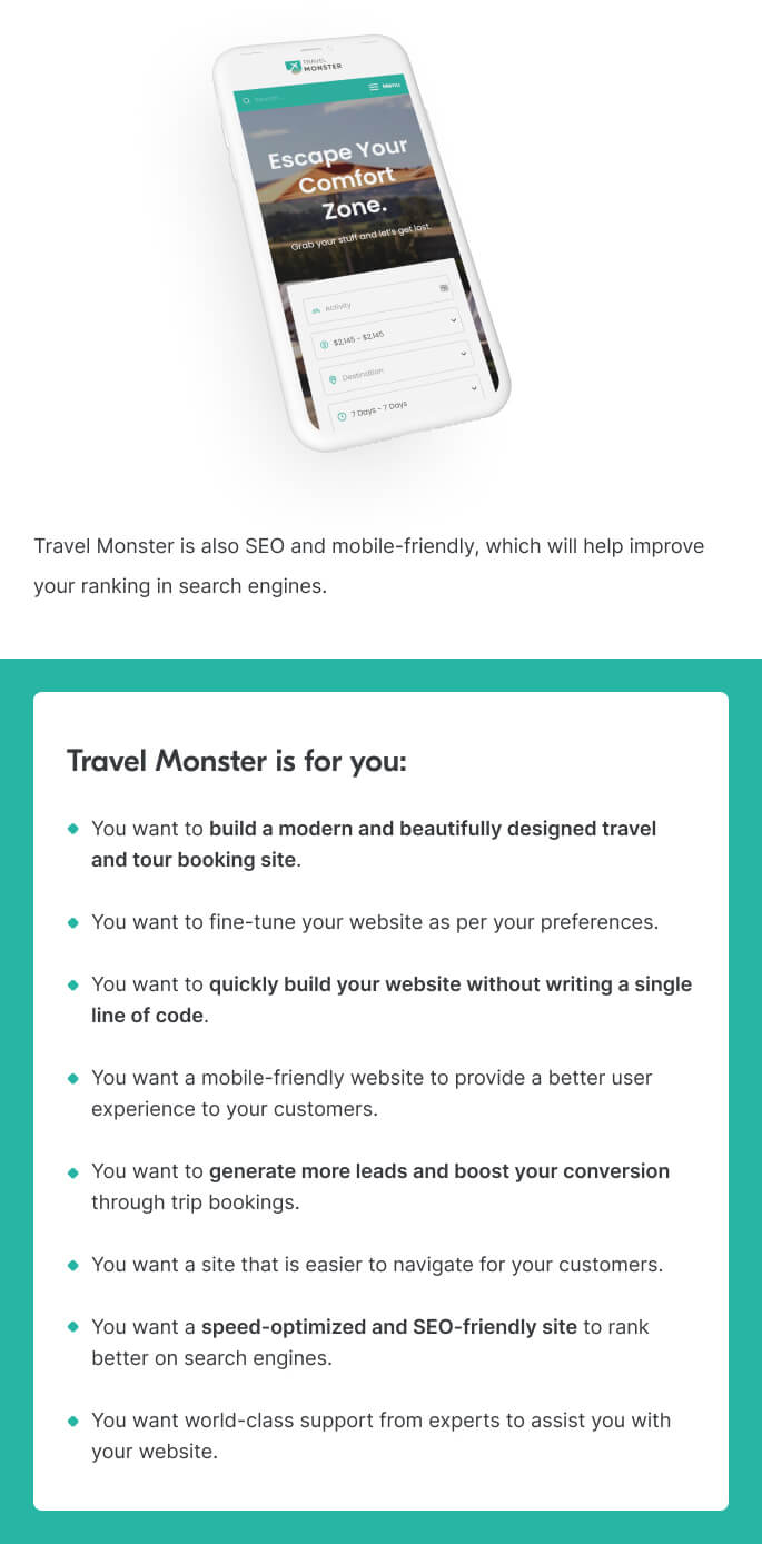Travel Monster is also SEO and mobile-friendly, which will help improve your ranking in search engines.
