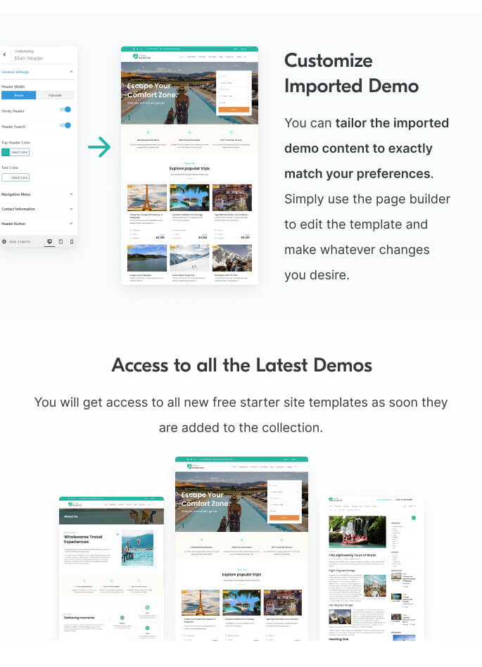 You can tailor the imported demo content to exactly match your preferences. Simply use the page builder to edit the template and make whatever changes you desire.